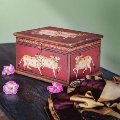 VINTAGE HAND PAINTED WOODEN BOX IN RED