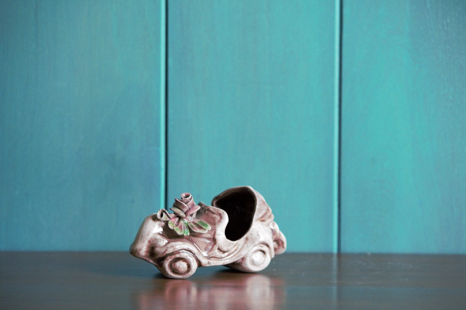 This charming ceramic jeep features a whimsical, hand-sculpted design with delicate floral details on top. Its soft pastel tones and rustic finish give it a vintage, handcrafted look. The open interior makes it perfect for succulents, or decorative displays. A unique and playful accent piece that adds character and charm to any shelf, desk, or home décor setting.
