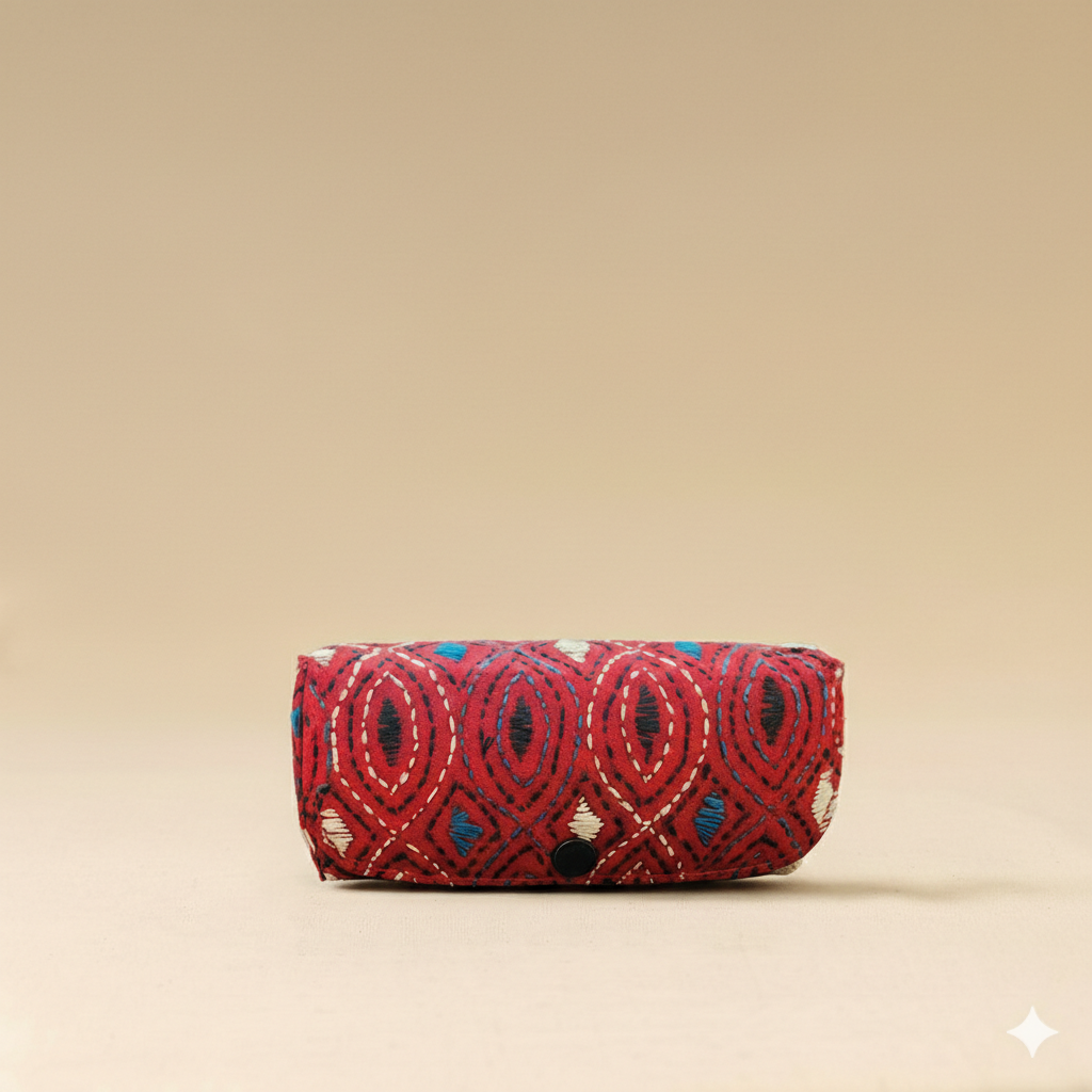 A compact fabric specs holder designed to keep your glasses safe and scratch-free.