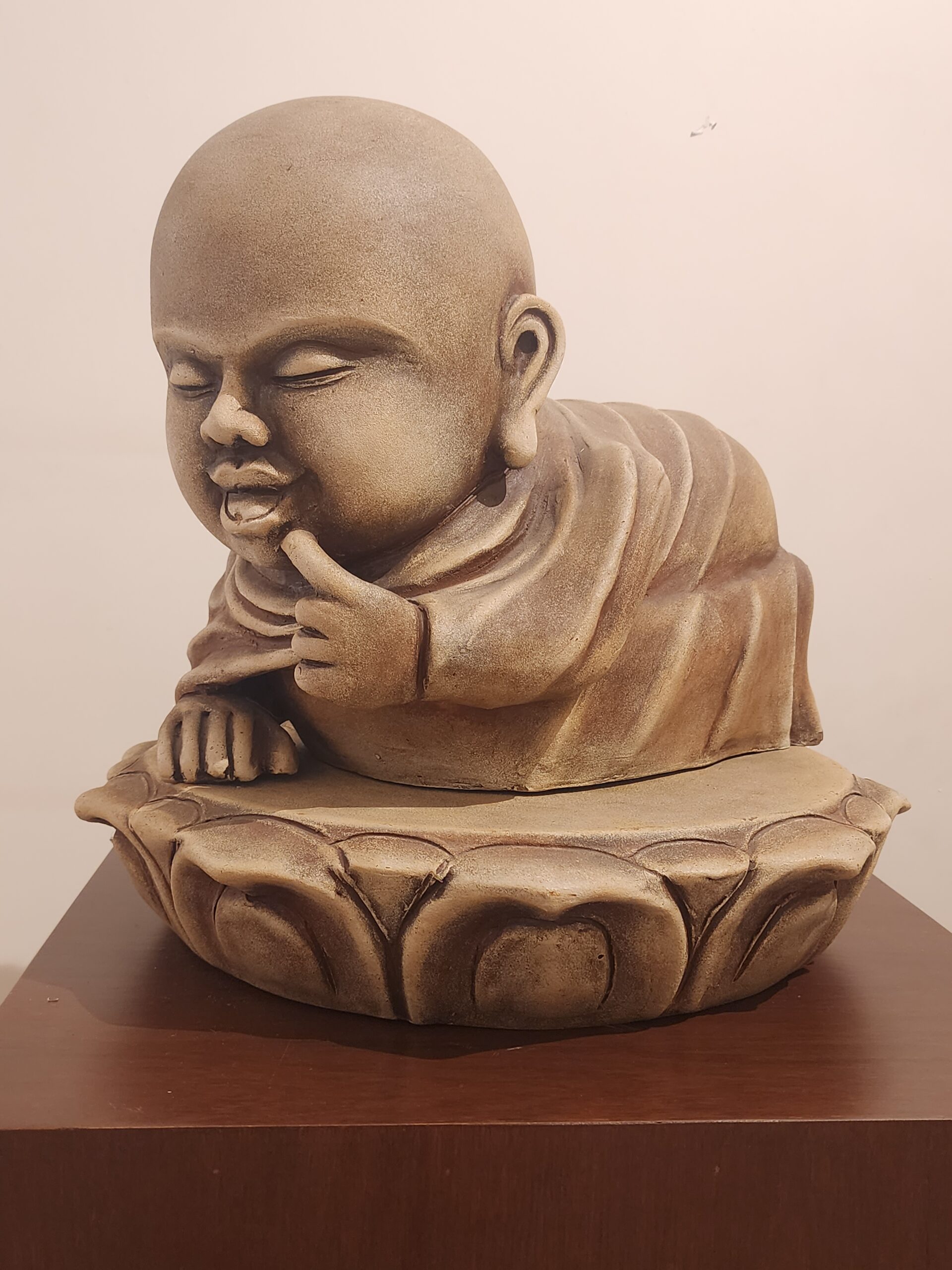 A quiet moment cast in form , this playful monk invites pause, curiosity, and a smile.