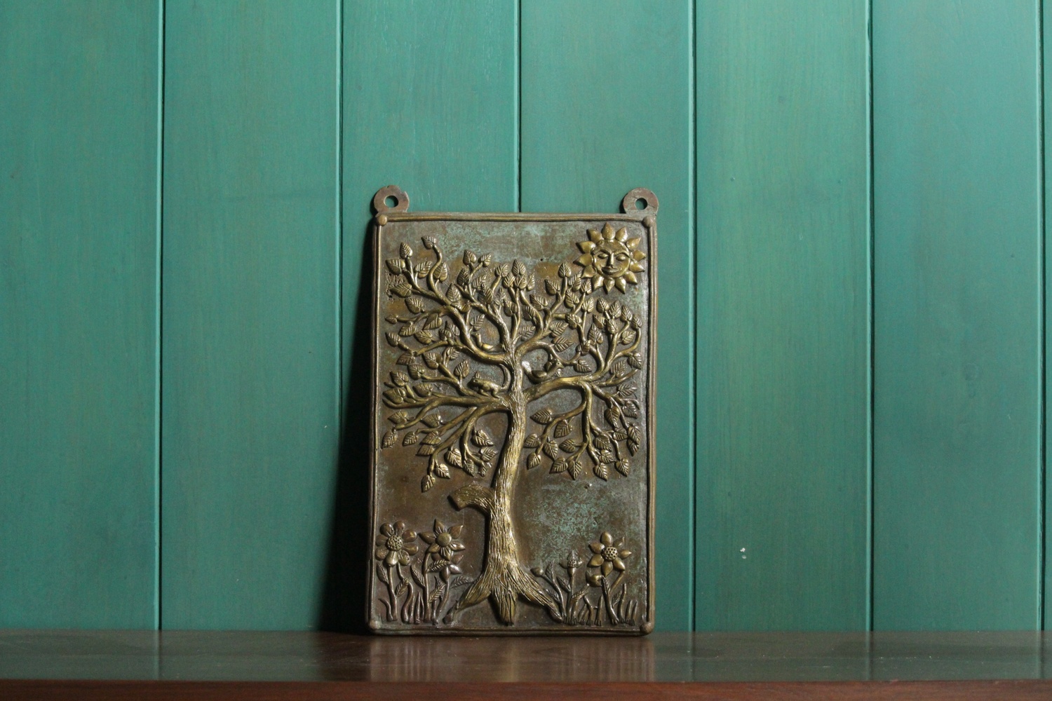 Nature Relief on Brass Plate – Handcrafted Wall Art