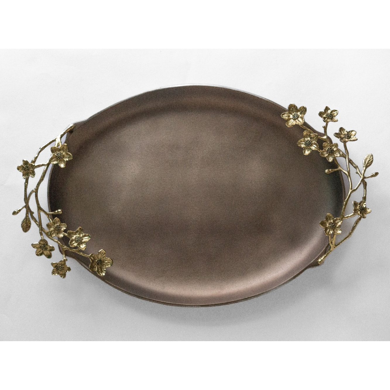 Oval Tray With Floral Antique Handle