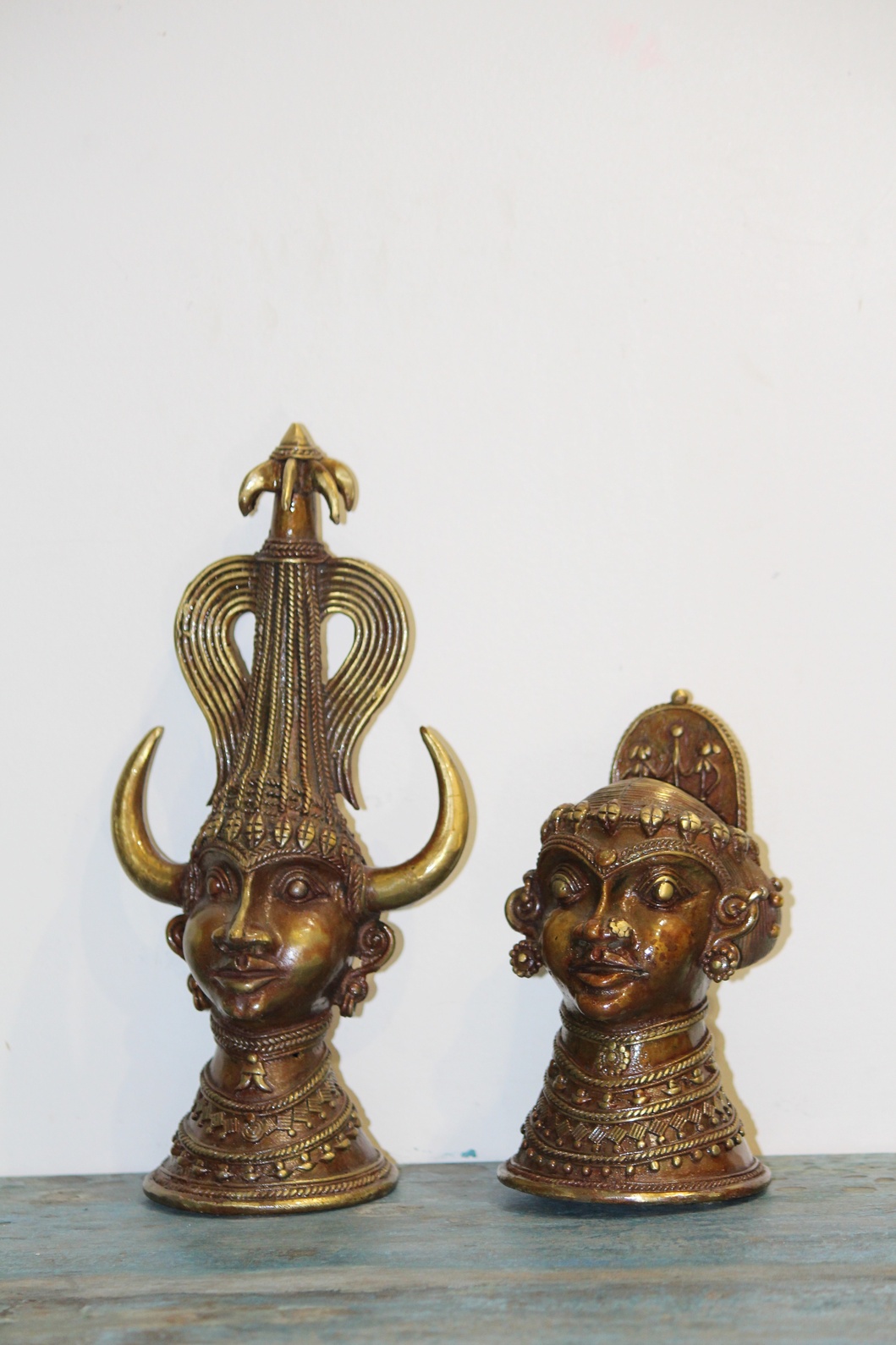Celebrate the richness of tribal artistry with this exquisite Tribal Raja Rani Brass Sculpture Set. Crafted with remarkable detail, this pair represents the royal elegance of traditional tribal kings and queens, beautifully captured in solid brass. Each sculpture features intricate hand-carved patterns, elaborate headgear, and expressive facial details that highlight the depth of skilled craftsmanship.