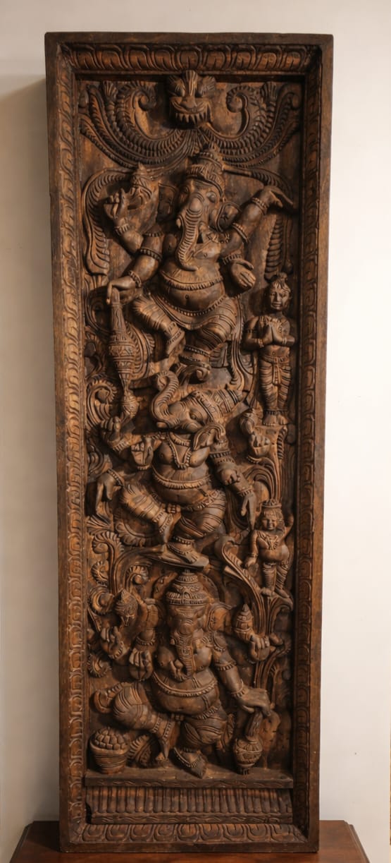 An exquisite wooden relief showcasing the divine presence of Ganesha through detailed craftsmanship.