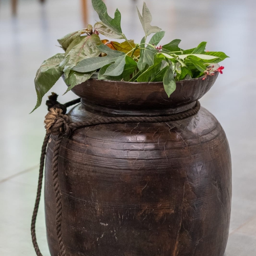 Wooden Pot With Rope Around