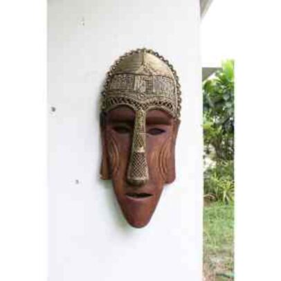 Wooden Mask With Dokra Work