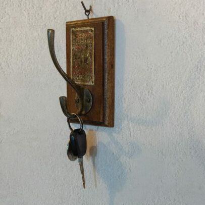 Wooden Wall Hook With Old Cigratte Cover Plating