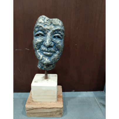 Brass Face On Wooden Stand
